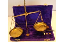 VINTAGE BRASS SCALES WITH WEIGHTS IN CARRY...