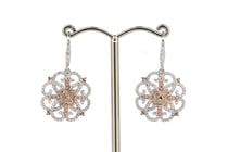 14K WHITE/ROSE GOLD, PINK DIAMOND, DROP EARRINGS....