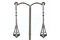 14K WHITE GOLD, BLACK DIAMOND, ART DECO INSPIRED...