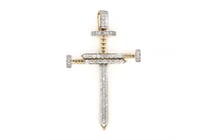 14K YELLOW GOLD, 0.91CT TDW DIAMOND, CRUCIFIX...