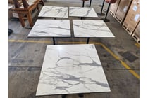 Cafe tables, Marble Look Veneer tops to metal...