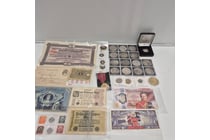 COLEECTION OF ASSORTED COINS NOTES AND...