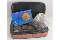AUSTRALIAN & WORLD COINS IN FLORAL BOX Size:...