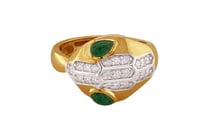 9CT YELLOW GOLD DIAMOND AND EMERALD RING...
