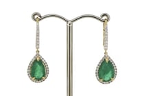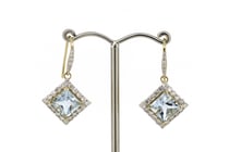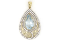 14K YELLOW GOLD, AQUAMARINE AND DIAMOND, DROP...