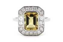 14K WHITE GOLD, HELIODOR AND DIAMOND, HALO RING....