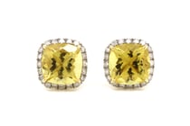 14K YELLOW GOLD, HELIODOR AND DIAMOND, HALO STUD...