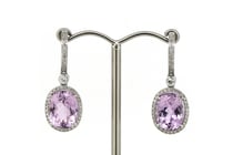 14K WHITE GOLD, KUNZITE AND DIAMOND, HALO DROP...