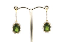 14K YELLOW GOLD, GREEN SAPPHIRE AND DIAMOND, HALO...
