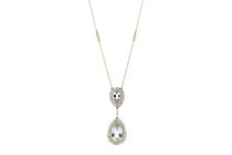 14K WHITE GOLD, AQUAMARINE AND DIAMOND, DROP...