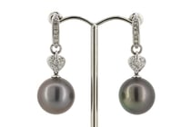 18K WHITE GOLD, BLACK CULTURED TAHITIAN PEARL AND...