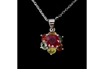 NATURAL RUBY & SAPPHIRE PENDANT & CHAIN...