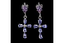 NATURAL TANZANITE & AMETHYST CROSS EARRINGS....