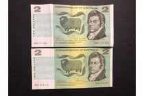 2 X COMM OF AUSTRALIA $2 NOTES PHILLIPS & WHEELER...