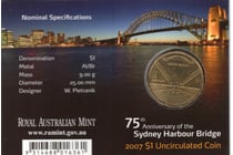 AUST 2007 $1 SYDNEY HARBOUR BRIDGE Australia...