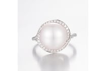 14CT WHITE GOLD PEARL AND DIAMOND HALO RING...
