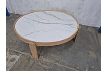 Coffee Table, Round, White Marble, Timber...