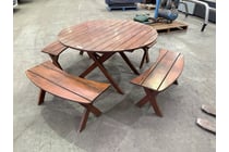 Round Wooden Outdoor Table with 4 Matching Curved...