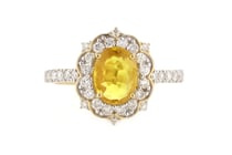 14K WHITE GOLD, YELLOW SAPPHIRE AND DIAMOND, HALO...