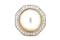14K YELLOW GOLD, WHITE CULTURED MABE PEARL AND...