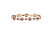 14K WHITE GOLD, RUBY AND DIAMOND, HALO BRACELET....