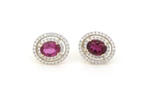 14K YELLOW GOLD, RUBY AND DIAMOND, DOUBLE HALO...