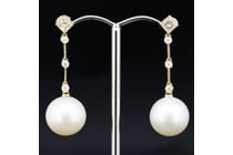 14K YELLOW/WHITE GOLD, WHITE CULTURED SOUTH SEA...