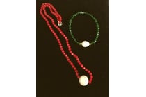 GREEN RED CRYSTAL NECKLACE AND BRACELET WITH...