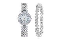 STAINLESS STEEL CUBIC ZIRCONIAS LADIES WATCH AND...