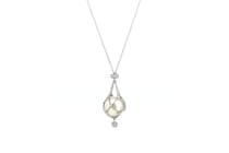 14K WHITE GOLD AND DIAMOND, PENDANT. THE DESIGN...