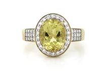 14K YELLOW GOLD, HELIODOR AND DIAMOND, HALO...