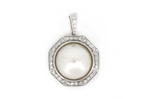 14K WHITE GOLD, WHITE CULTURED MABE PEARL AND...