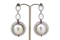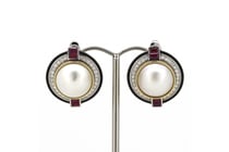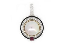 14K YELLOW GOLD, WHITE CULTURED MABE PEARL, RUBY...
