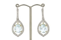 14K WHITE GOLD, AQUAMARINE AND DIAMOND, DROP...