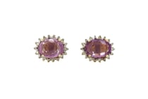 14K YELLOW GOLD, PINK SAPPHIRE AND DIAMOND, HALO...