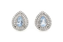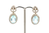 14K WHITE GOLD, AQUAMARINE AND DIAMOND, DOUBLE...