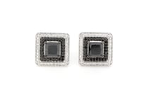 14K WHITE GOLD, BLACK DIAMOND AND DIAMOND, DOUBLE...
