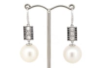 14K WHITE GOLD, WHITE CULTURED SOUTH SEA PEARL...
