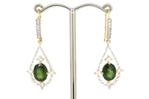 14K YELLOW GOLD, GREEN SAPPHIRE AND DIAMOND, DROP...