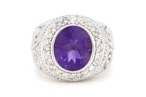 14K ROSE GOLD, AMETHYST AND DIAMOND, HALO DROP...