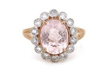 14K ROSE GOLD, MORGANITE AND DIAMOND, HALO RING....