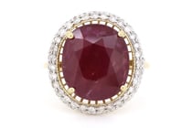 14K YELLOW GOLD, RUBY AND DIAMOND, HALO RING. THE...