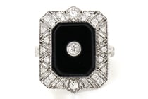 14K WHITE GOLD, ONYX AND DIAMOND, ART DECO...