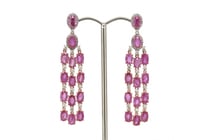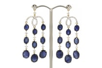 14K ROSE GOLD, TANZANITE AND DIAMOND, DOUBLE DROP...