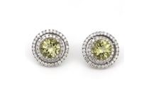 14K WHITE GOLD, HELIODOR AND DIAMOND, DOUBLE HALO...