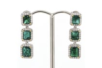 14K WHITE GOLD, EMERALD AND DIAMOND, TRIPLE DROP...