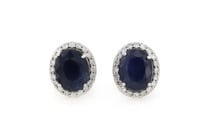 14K WHITE GOLD, BLUE SAPPHIRE AND DIAMOND, HALO...