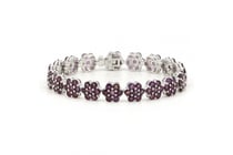 14K WHITE GOLD AND RUBY, FLORAL BRACELET. THE...
