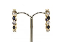 14K YELLOW GOLD, BLUE SAPPHIRE AND DIAMOND, HOOP...