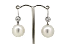 14K WHITE GOLD, WHITE CULTURED SOUTH SEA PEARL...